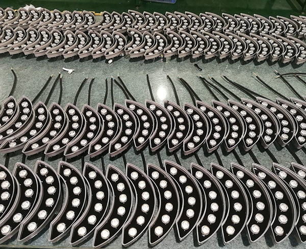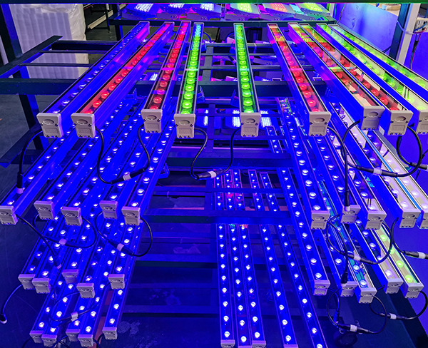 點(diǎn)光源使用產(chǎn)品:使用產(chǎn)品:RGBW外控四色鋁座點(diǎn)光源1800余個(gè)。(規(guī)格:Φ85MM)24W LED大功率洗墻燈600多米。(規(guī)格:38*26*1000MM)
